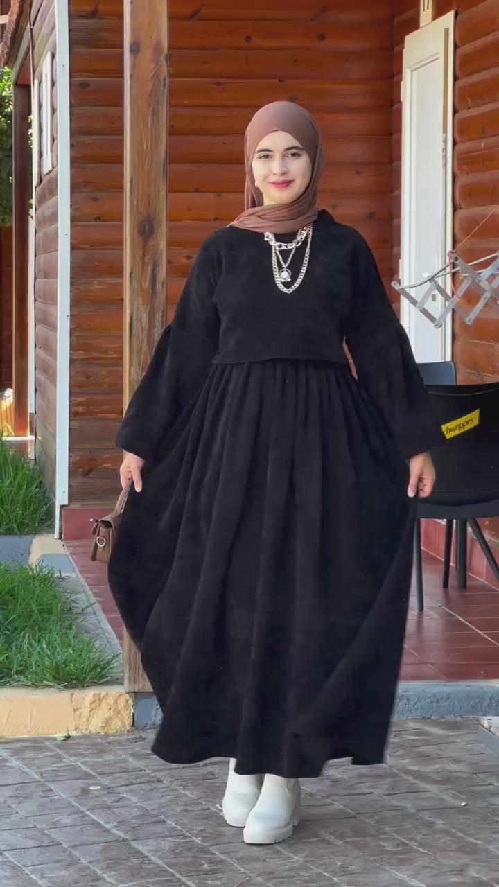 بدلة قطعتين للمحجبات بلمسة مخملية